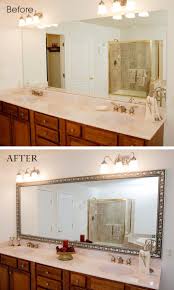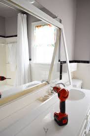 How to make frame for bathroom mirror. Using the miter saw cut 45 angles at each end of all four pieces. Measure mirror and select frame style. Determine trim style and positioning of trim around mirror to obtain.