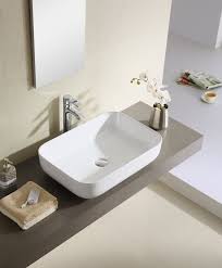 Novatto ceramic rectangular vessel bathroom sink np 01321. This rectangular vessel bathroom sink is made from true vitreous china which is triple glazed and triple fired to ensure your sink is durable and strong. Sleek and contemporary the vox rectangle vessel style sink features a wide deep basin and rounded edges in true minimalist fashion.