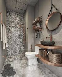 Steampunk bathroom it s industrial and crazy. Accessories of steampunk bathroom often use materials like copper brass granite corrugated steel and other mechanical pieces to incorporate with 19th century industrial age. Much copper and especially brass trendy in bathroom designs 2020 give special fantasy light warmness effect.